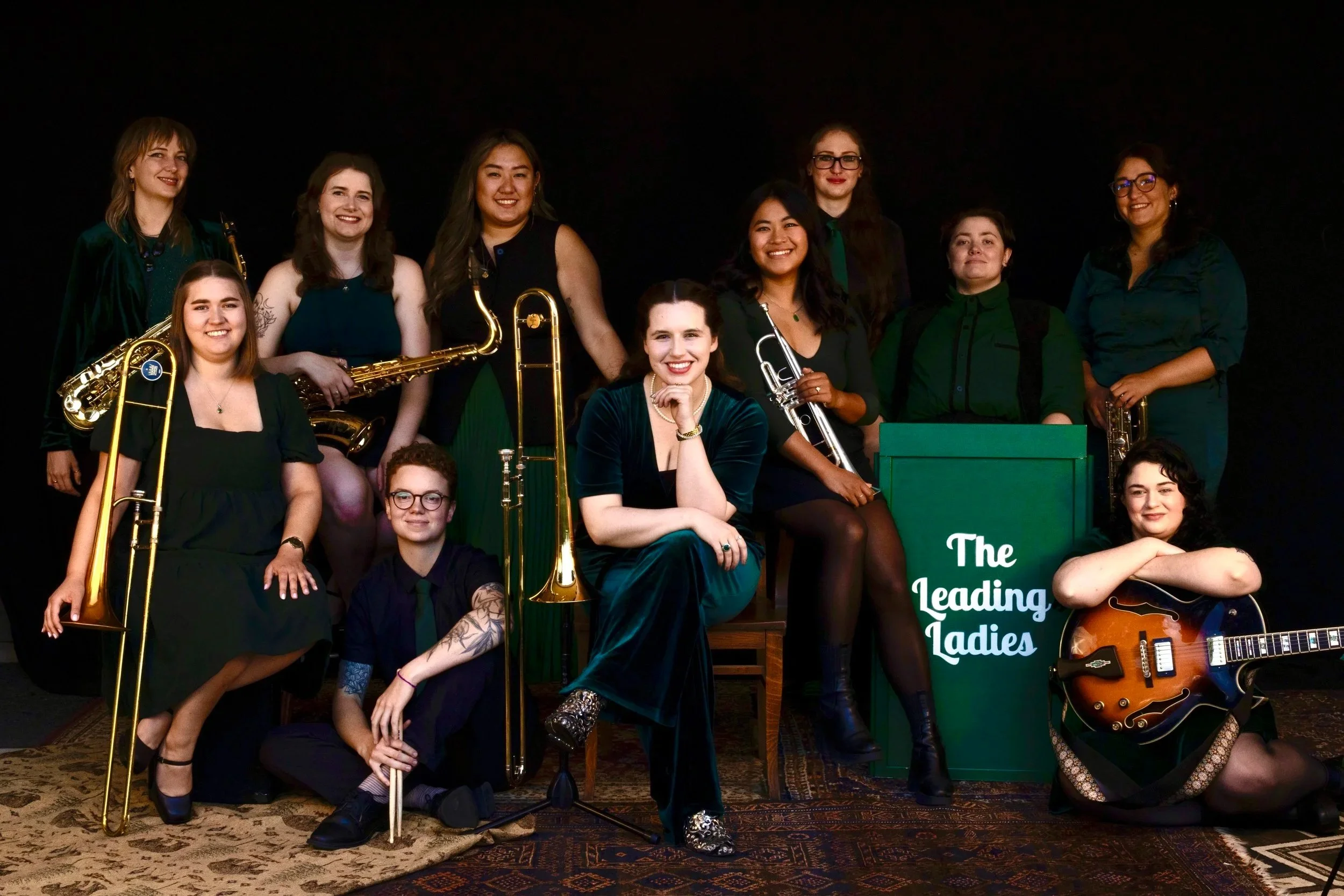 Taking cues from the vintage stylings of the 1940s, 50s, and 60s, the Leading Ladies blend beloved jazz and blues classics with fresh, original arrangements and a high-energy, swingin’ performance style. Directed by trombonist Casey Thomas-Burns, this dynamic and vibrant group of women first came together to perform a single show in 2019. They've stuck together ever since.